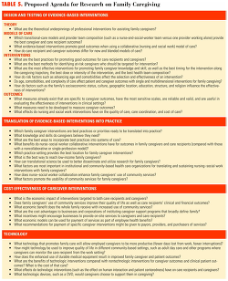* creating an agenda for future research on family caregiving (see Table 5, page 11).