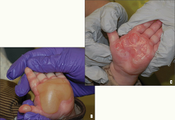 Removal of adherent old gauze dressings and the exposure of wounds to the air can be painful for the patient who has not been adequately premedicated. Moistening the adherent dressings prior to removal will minimize patient discomfort. Sometimes flushing alone is inadequate for wound cleansing and mechanical friction using a wash cloth is necessary but painful. Timely opioid premedication by the oral route, 30 to 45 minutes before the start of the procedure, allows the analgesic effect to peak at the time of wound care. Additional medication can be administered intravenously as necessary during the procedure to relieve breakthrough pain and anxiety. Both air and water temperature should be warm, but hot water should not be used for hydrotherapy. The patient should also be appropriately covered against ventilation drafts. Pain usually diminishes once the exposed wound has been covered with a topical ointment, dressing, or skin substitute.