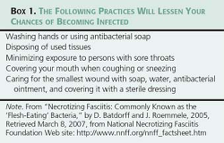 Predisposing factors in the development of NF include surgical or traumatic wounds, burns, frostbite, insect bites, and skin lesions such as open sores or varicella. There are occasions when the infection is idiopathic (Walker, 2005). Frequently, a comorbid medical condition (see Table 3) may create an environment that can potentiate the development of the infection. Conditions the orthopaedic nurse may see include diabetes mellitus, obesity, renal failure, vascular insufficiency, and the immunocompromised (Fink & DeLuca, 2002).