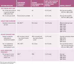 This section describes results that were achieved by the 10 TCAB hospitals by the end of phase 3 in April 2008. As a group, TCAB teams in the 10 pilot hospitals (13 TCAB units) tested and implemented changes addressing all five TCAB themes. However, teams chose the changes to test and implement, so the number of pilot units that reported data for specific goals varies. Table 1 summarizes results for the four original TCAB design themes.