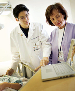 The video rounding system was used without modification in an additional 23 cases during 2008. All of the users reported being highly satisfied with the system, and now video rounding is being integrated into the nurse-physician bedside rounding process that was implemented throughout Cedars-Sinai to improve patient and team communication. The MD-RN Collaborative network helped to bring video rounding into labor and delivery rooms and into a multiphysician urology practice. In addition, all medical-surgical and critical care units are being wired to enable its use. A larger study involving a multispecialty physician group is being planned. It will take advantage of new computer technology, such as computer tablets with video capability and workstations on wheels, being installed for the new Cedars-Sinai electronic medical records system. Ultimately, providers will be able to upload video clips into medical records.