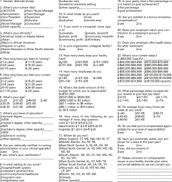 We hope to answer these questions and more in Nursing Management's ninth survey of this kind. Please take a moment to fill out the survey here or online. We'll publish the results in a future issue.